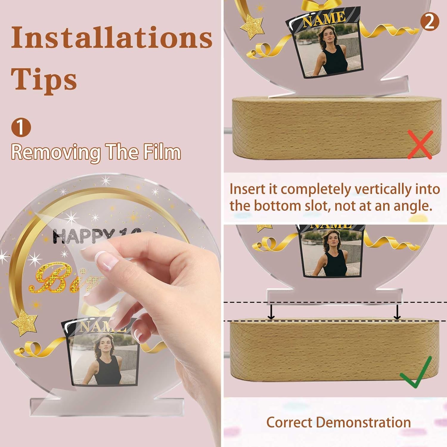 - 🎁【Custom】This birthday night light is made with the name and photo of the person you love. Acrylic decorative panels enhance the colors and details of photos, create amazing visual effects, and draw attention to the moments you cherish.