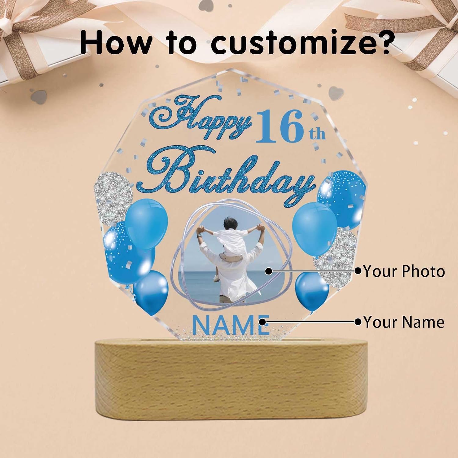 UUBAO Personalized Happy Birthday Night Light Gift with Photo Customized Acrylic Lamp for Her Mom Daughter Grandma Nana(Blue and Silver)